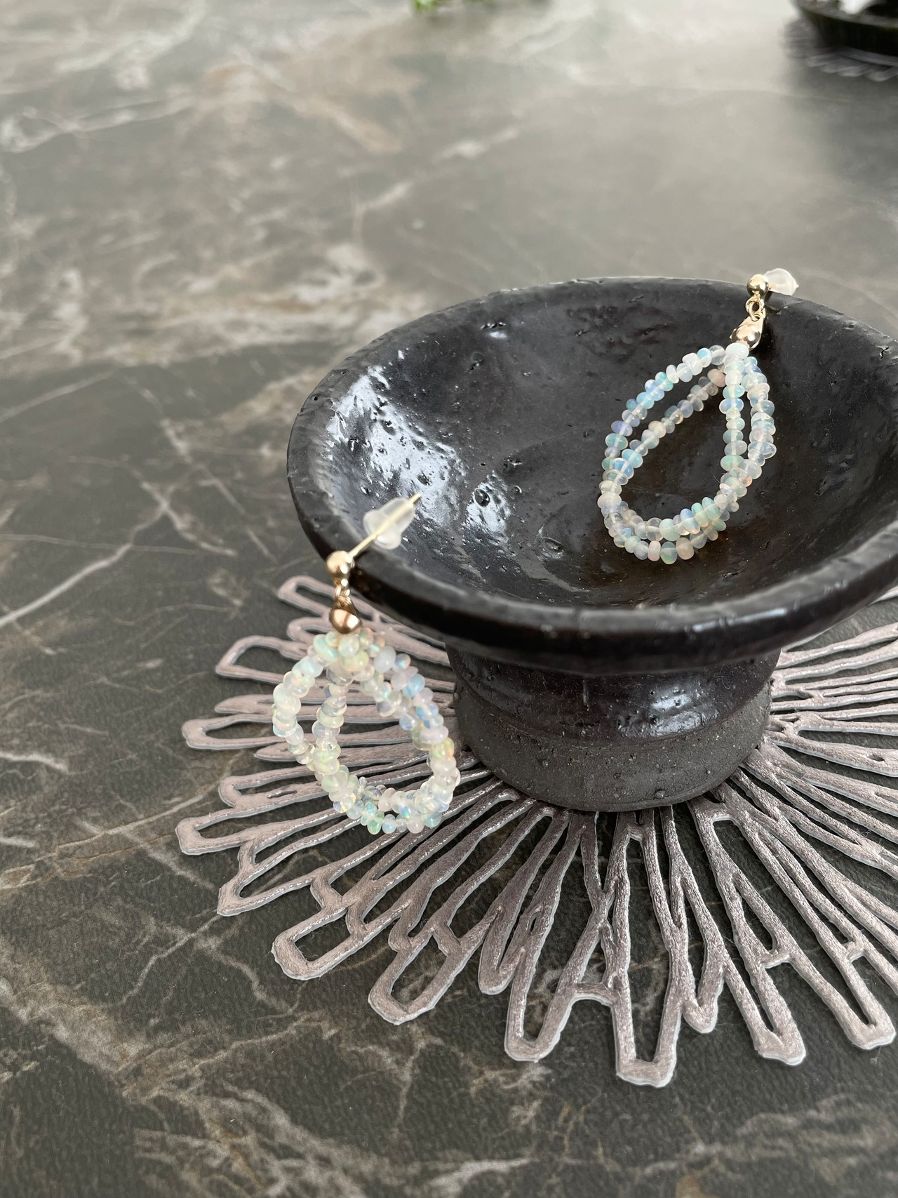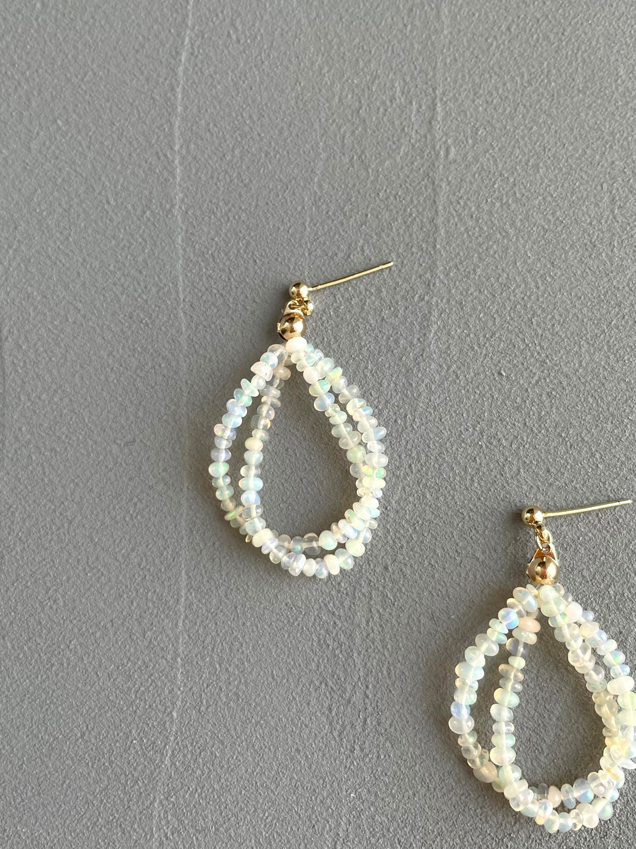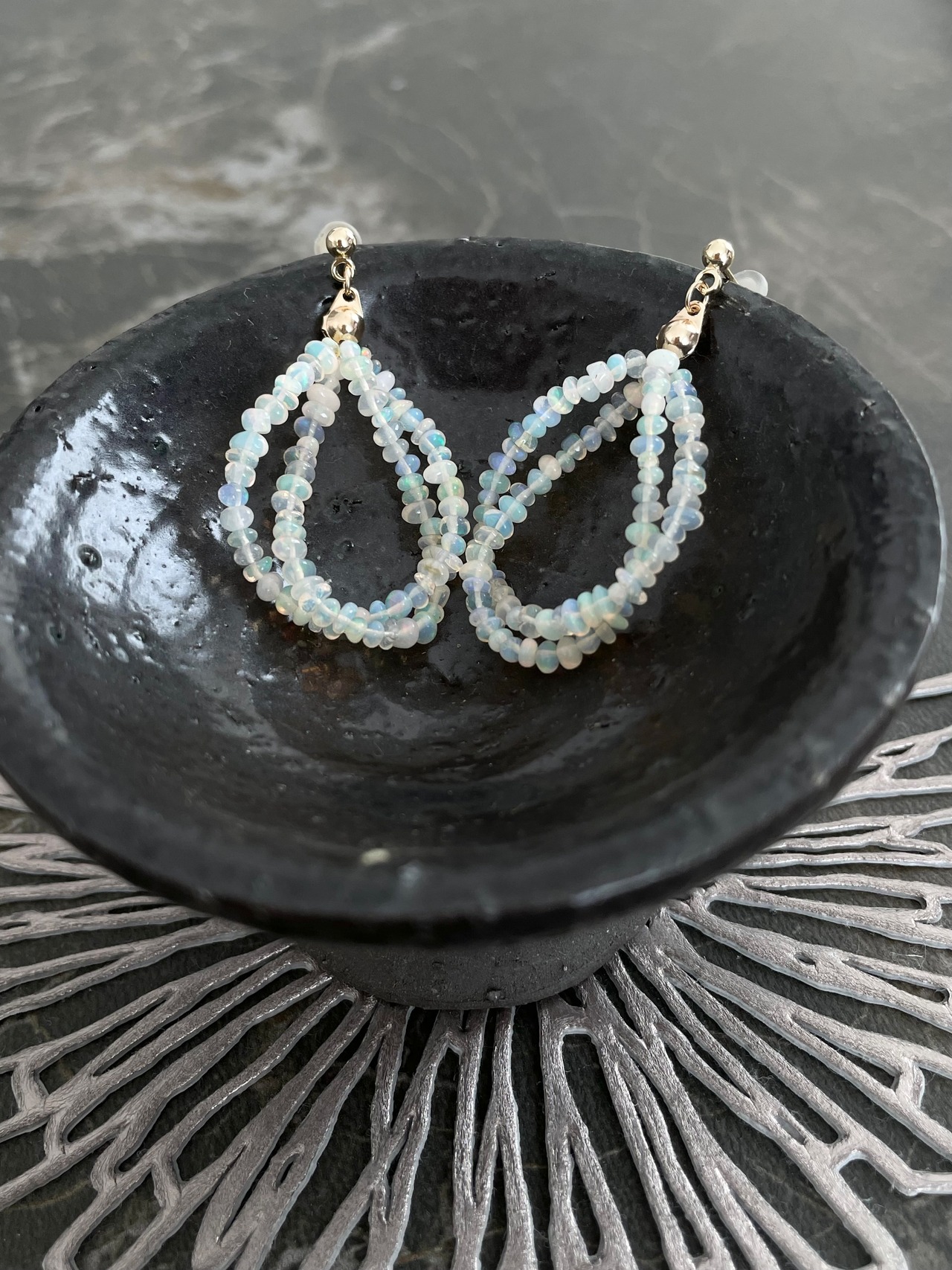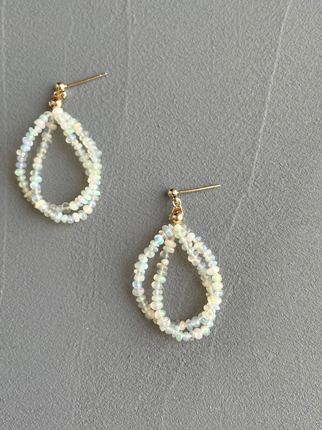 エチオピアンオパールの2連ループのピアス(乳白色系)